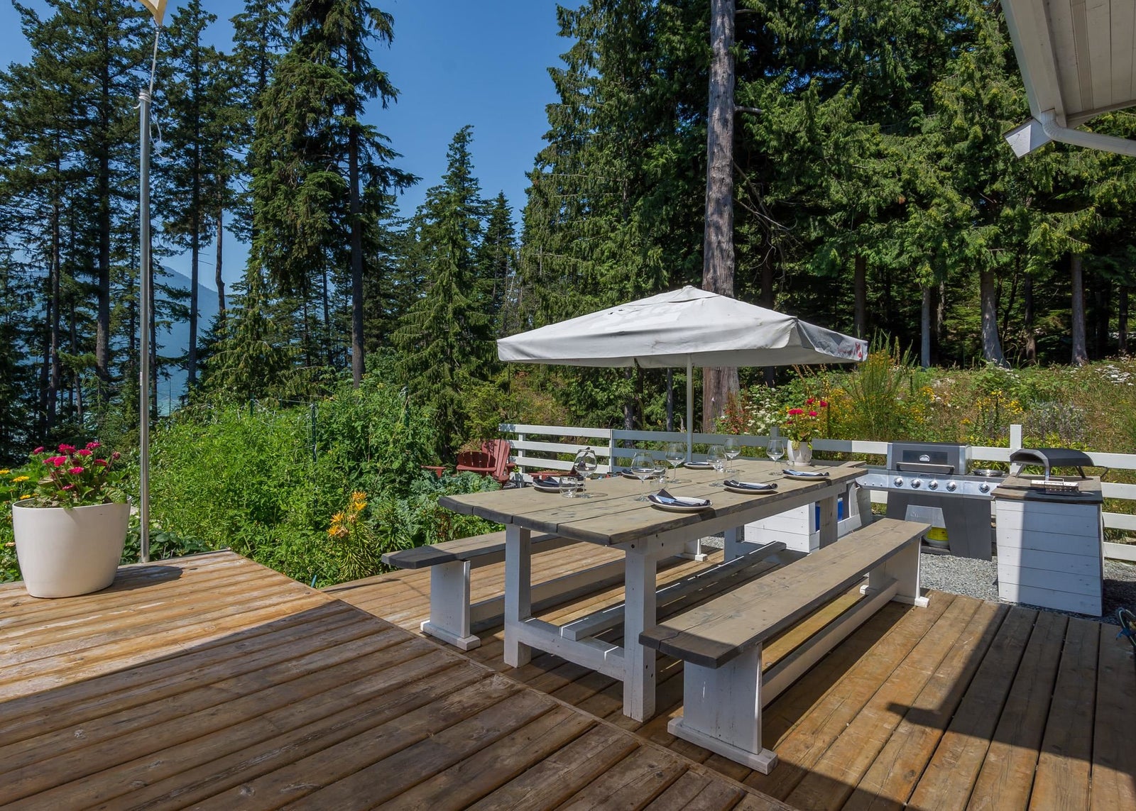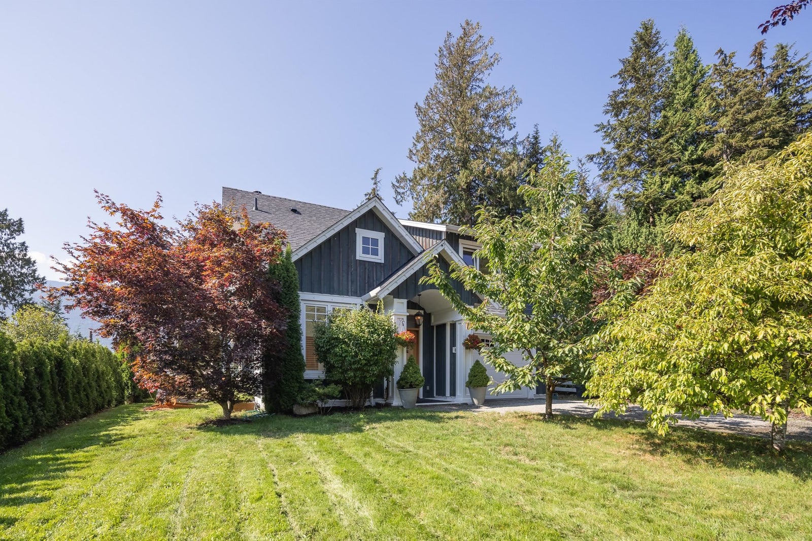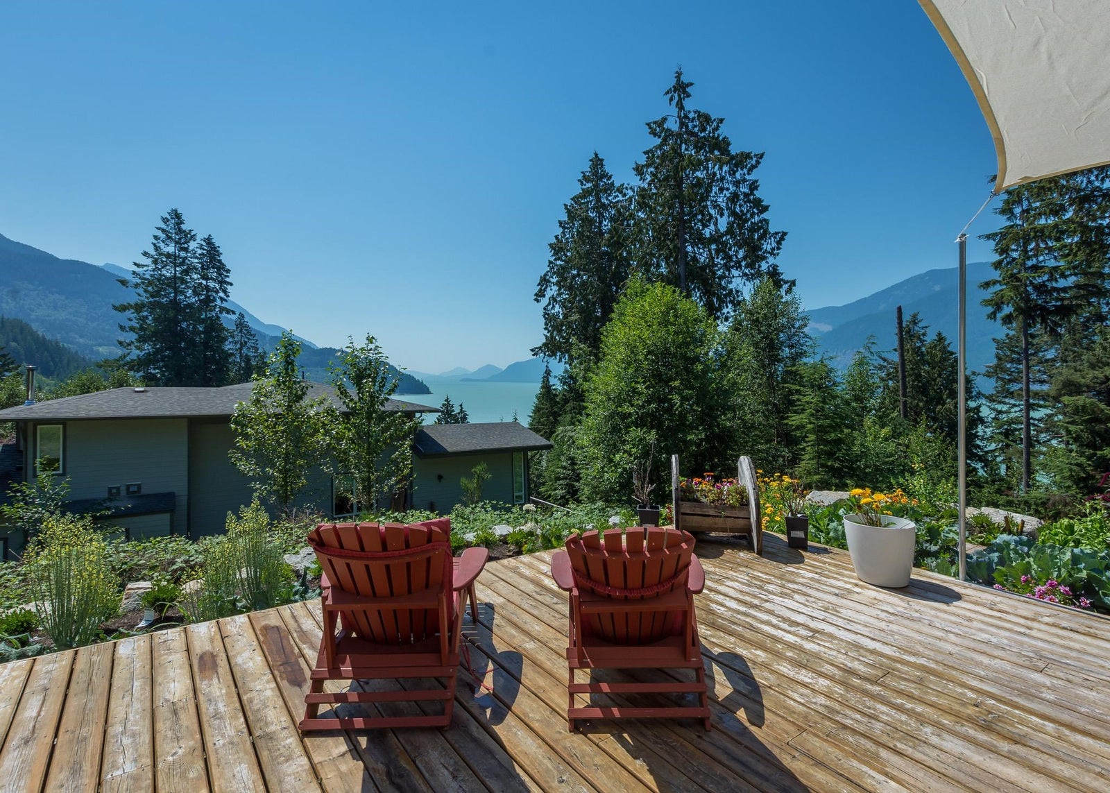 Britannia Beach Custom Craftsman with Views! This charming home on an expansive lot offers ocean & mountain vistas surrounded by mature trees. Cozy yet spacious interior with high-end finishes & hardwood. Open main floor living/dining with 1 bed & 1 bath. Upstairs: 3 beds incl. primary suite w/ large ocean-view patio, laundry, bath. Enjoy the wrap-around deck with 2 areas, BBQ & fire pits, lush gardens! Perfect family home. Granite, European windows, wood fireplace, double garage. Call for private showing!