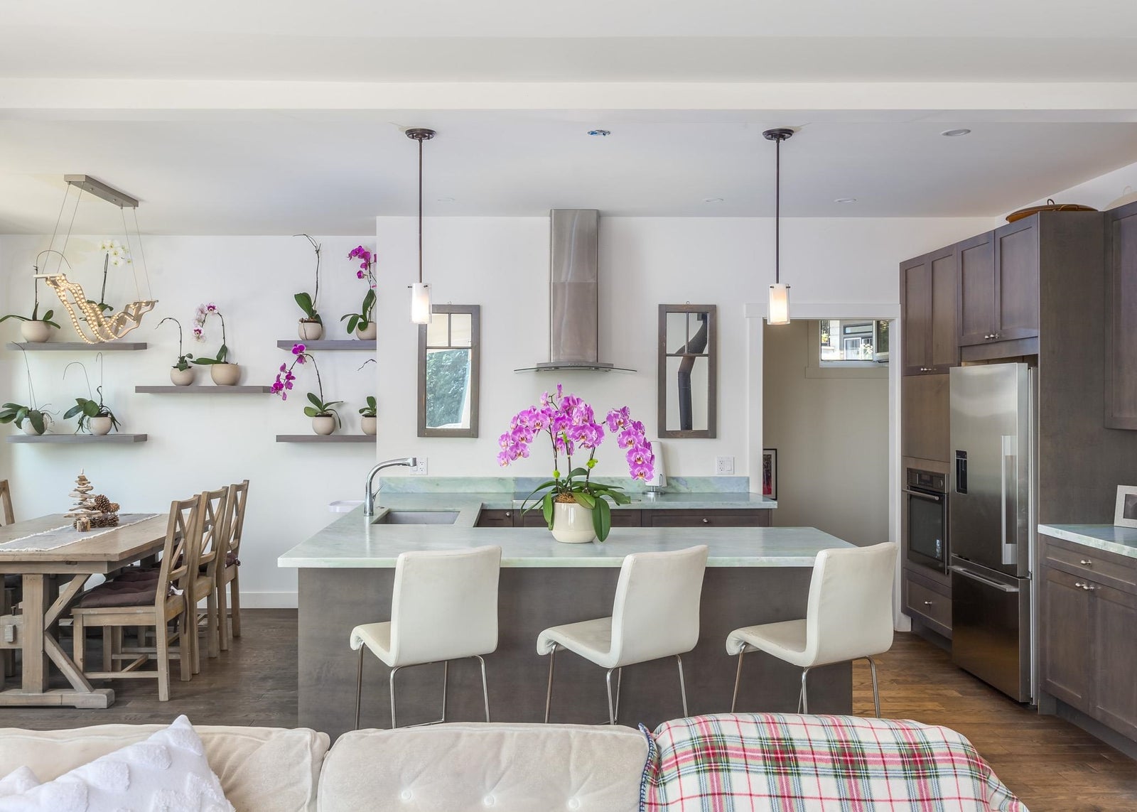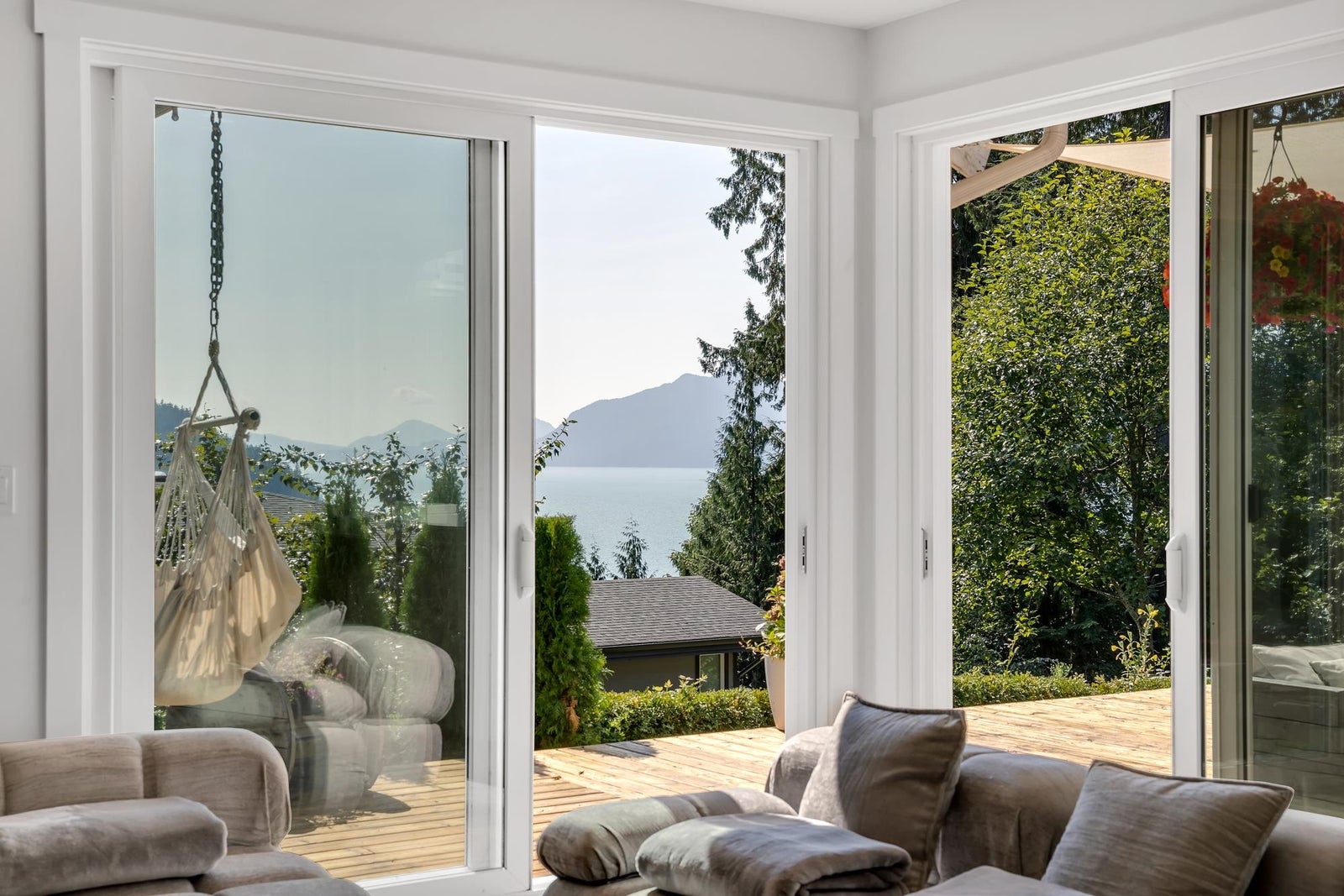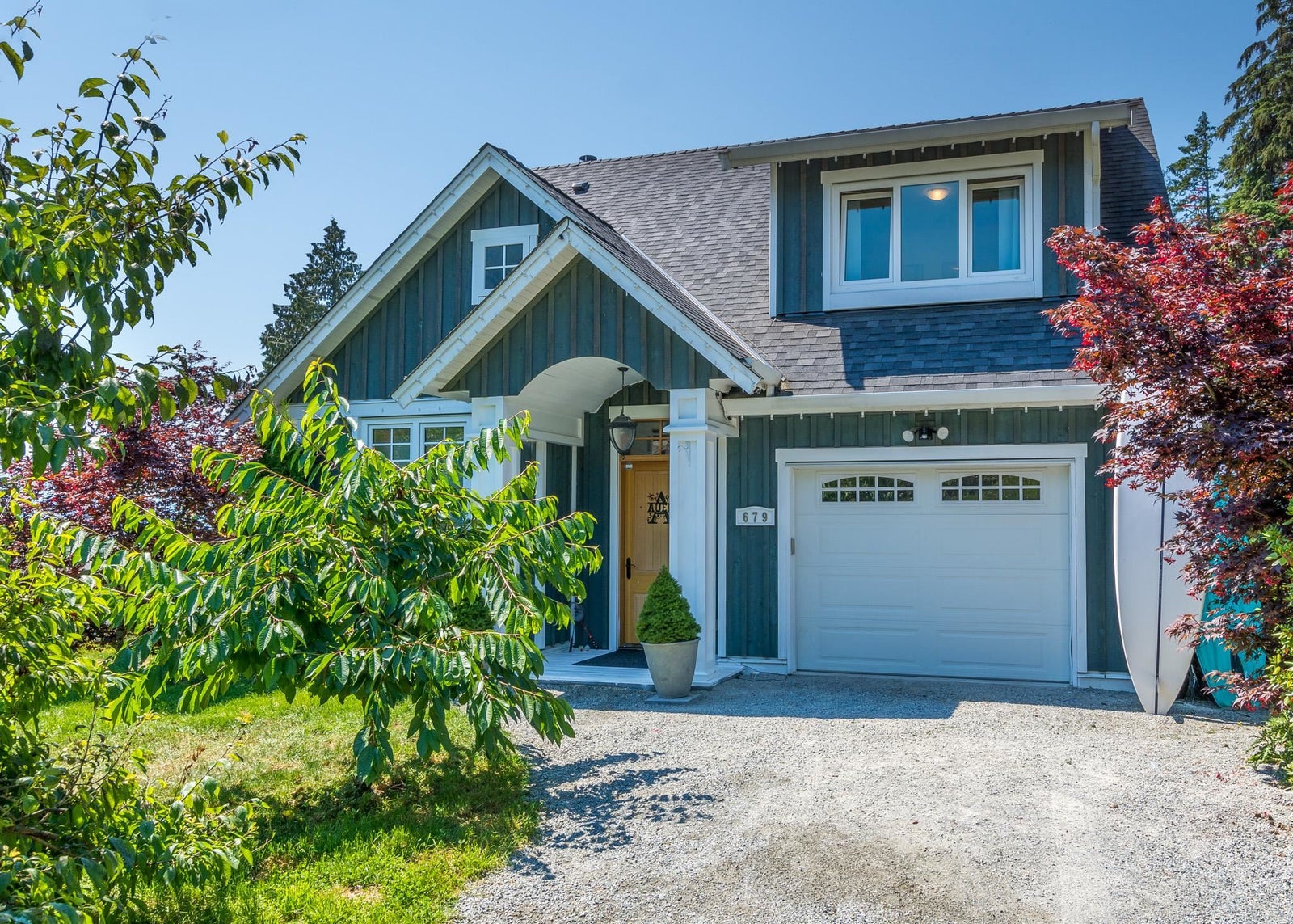 Britannia Beach Custom Craftsman with Views! This charming home on an expansive lot offers ocean & mountain vistas surrounded by mature trees. Cozy yet spacious interior with high-end finishes & hardwood. Open main floor living/dining with 1 bed & 1 bath. Upstairs: 3 beds incl. primary suite w/ large ocean-view patio, laundry, bath. Enjoy the wrap-around deck with 2 areas, BBQ & fire pits, lush gardens! Perfect family home. Granite, European windows, wood fireplace, double garage. Call for private showing!