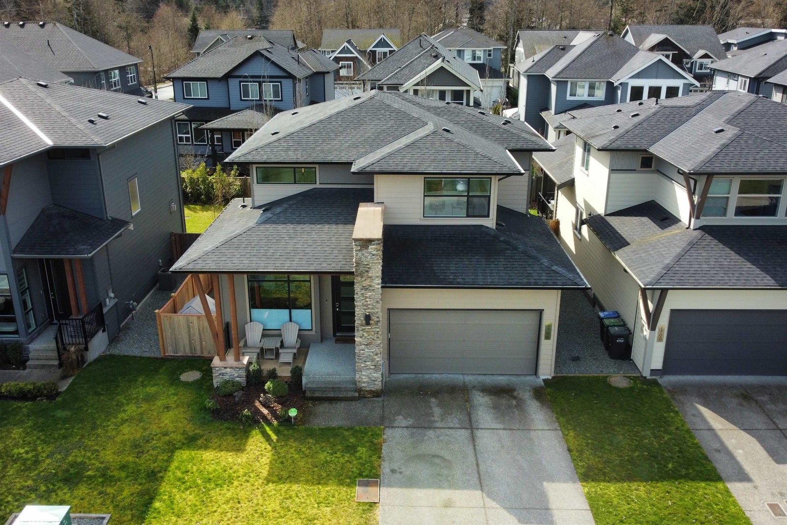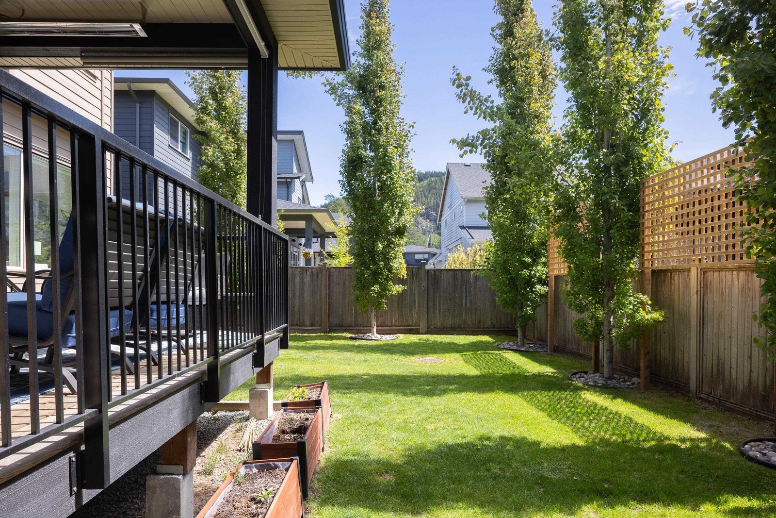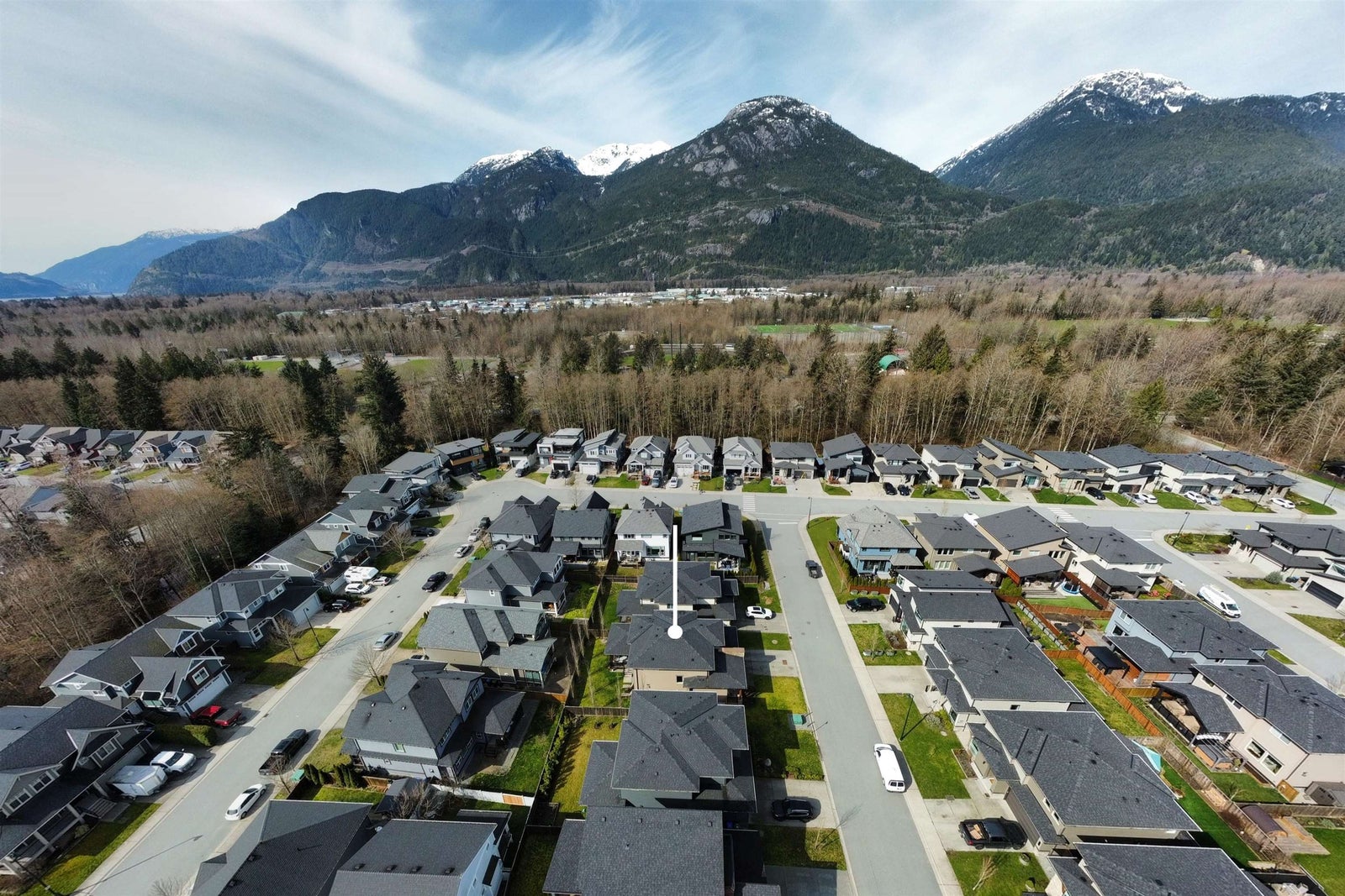 Squamish Family Living! Bright 3 bed + den, 2.5 bath home in a new, quiet central location with mountain views. Features: built-in speakers, coffered ceilings, covered deck w/ fireplace, fenced yard (mature trees), AC, gas fireplace/stove, EV charger, hardwood throughout, open concept layout, high-end finishes! Entertain in the gourmet kitchen, enjoy the yard, or relax by the deck fireplace after a hot tub. Flexible upstairs could be 4th bed. Walk to amenities! Call for private showing!