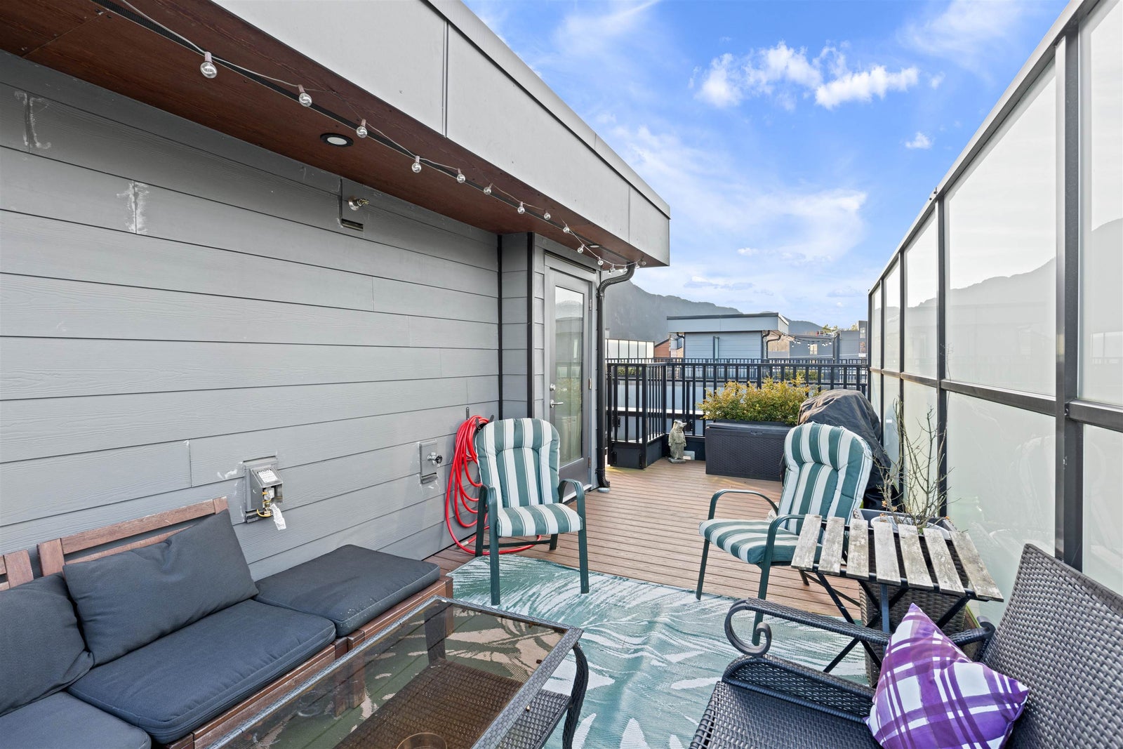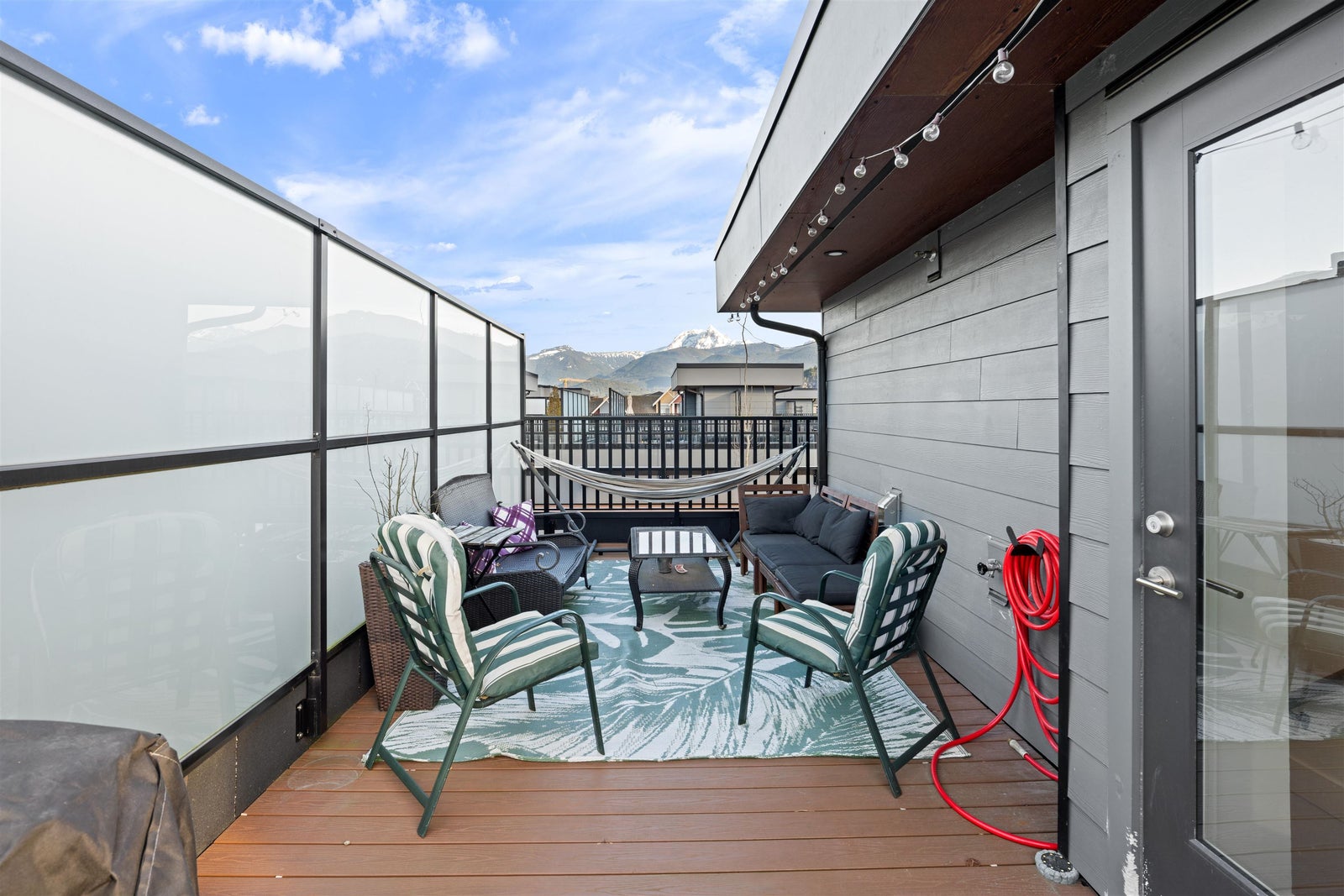 Welcome to this stylish contemporary 3-bed, 2.5-bath townhouse at Lizzy Bay, located in the heart of downtown Squamish. This thoughtfully designed home features a main-level den/flex space with generous storage, three spacious bedrooms upstairs, and an incredible rooftop patio with 360-degree mountain views. The kitchen boasts stone countertops, a gas range and ample cabinetry. Enjoy stunning views of of the surrounding mountains from your rooftop deck. Includes 1 parking stall, and 2 storage units, this home is steps from downtown restaurants, amenities, trails, and world-class climbing. Pets and rentals are welcome!