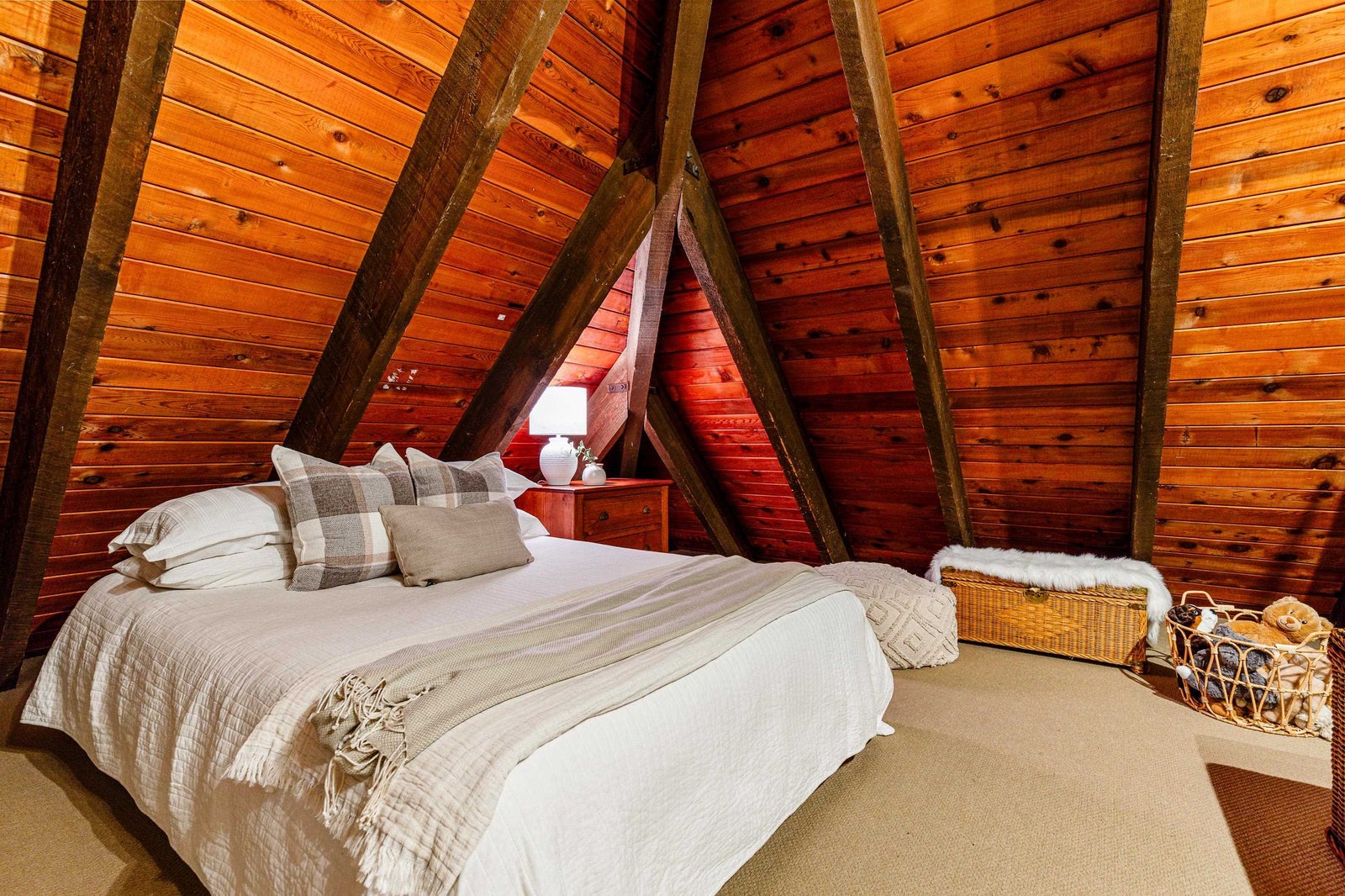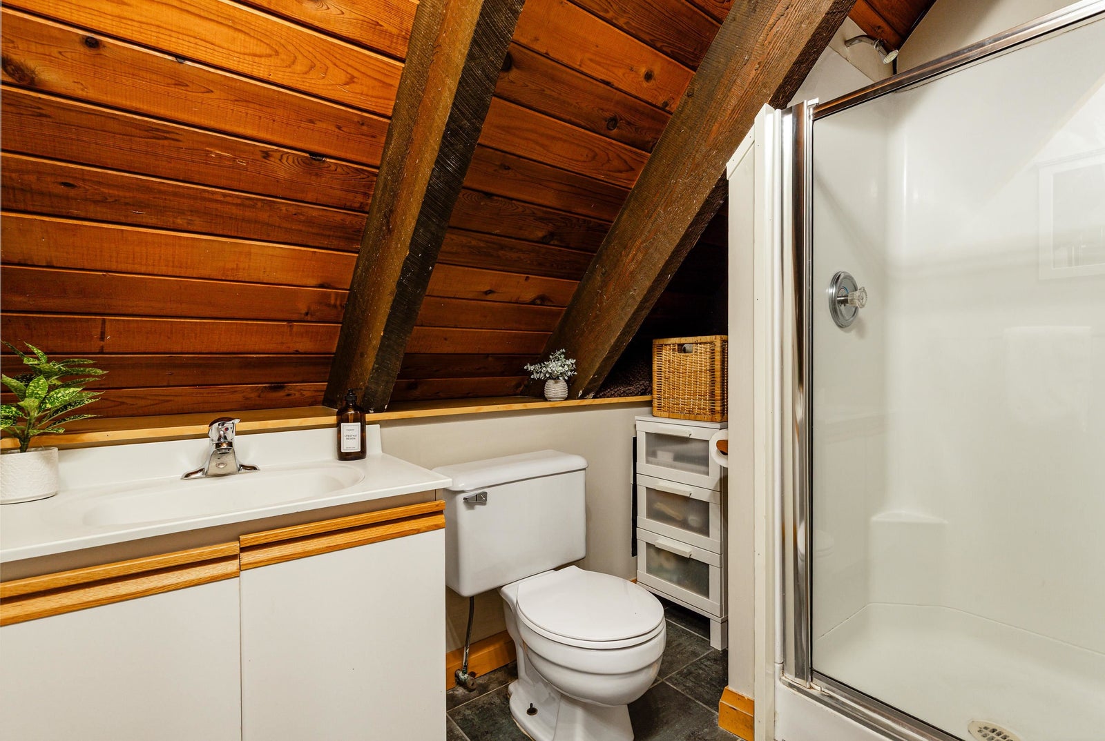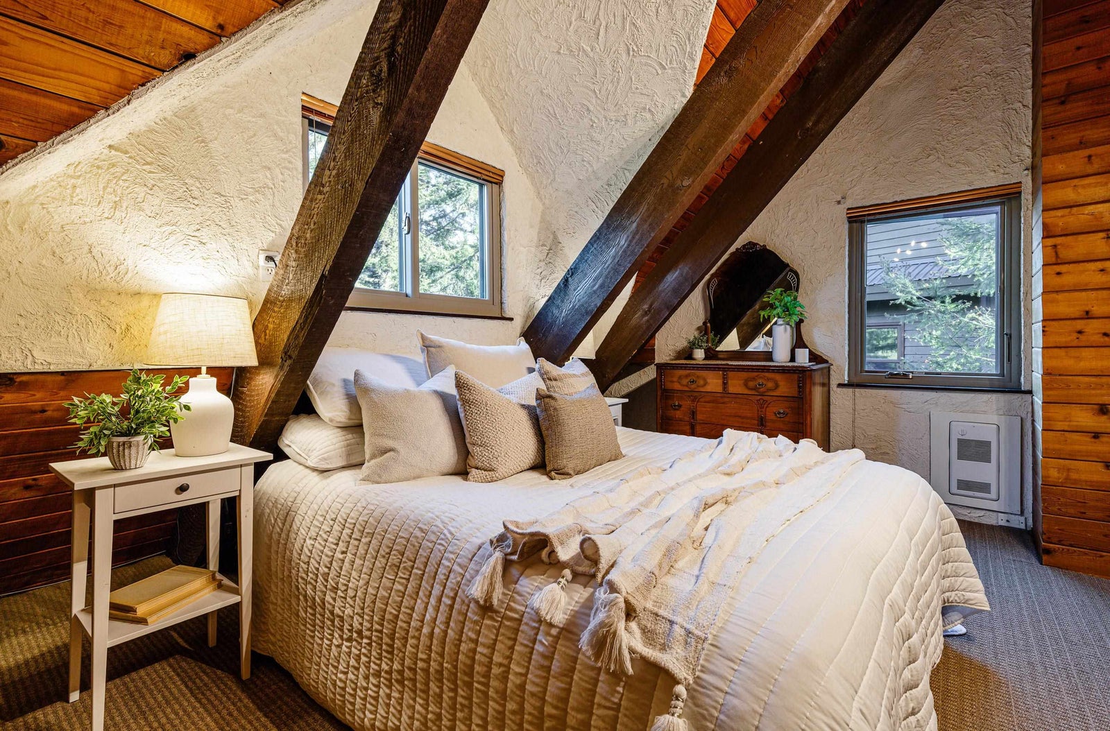 Welcoming alpine-inspired chalet combining modern living with timeless charm, thoughtfully cared for by one family for over 30 years. Features 3 beds, 2 baths, a large vaulted loft, and open layout. Airy kitchen with breakfast nook, sunken living room, and formal dining opening onto a spacious patio with mountain views. Versatile outdoor space with tiered gardens underground irrigation, and host of 2 family weddings. Includes a 2-bed + den guest suite and sauna. Parking for 6, steps from bus route. Renovated throughout. A perfect alpine retreat or full-time home.